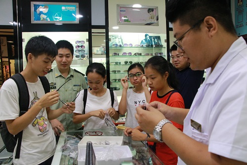 民警帶學(xué)生配眼鏡。