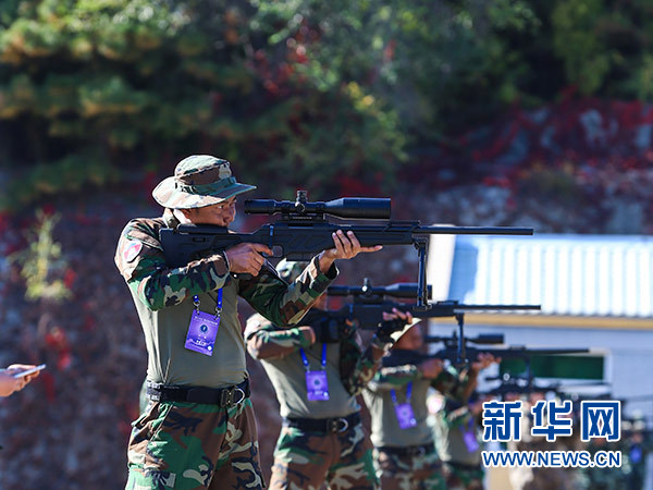 10月18日,參賽隊(duì)員在多種姿勢狙擊課目中采用立姿進(jìn)行狙擊。新華社發(fā)(安曉惠 攝)