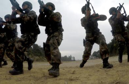 ????武警雪豹突擊隊(duì)隊(duì)員進(jìn)行運(yùn)動(dòng)射擊訓(xùn)練(1月12日攝)。新華社記者李剛 攝
