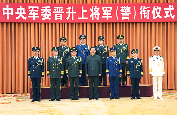 ????中央軍委舉行晉升上將軍銜警銜儀式 習近平頒發(fā)命令狀并向晉銜的軍官警官表示祝賀