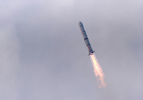 ????搭載風(fēng)云二號08星的運(yùn)載火箭在西昌衛(wèi)星發(fā)射中心點(diǎn)火發(fā)射(2014年12月31日攝)。新華社發(fā)(郭文彬 攝)