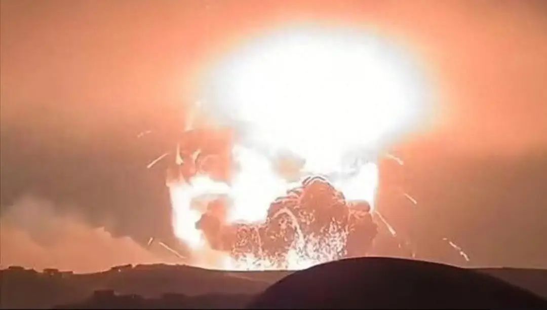 在社交媒体上传播的现场视频显示,一个巨大火球照亮夜空,爆炸地点升起巨大的蘑菇云。