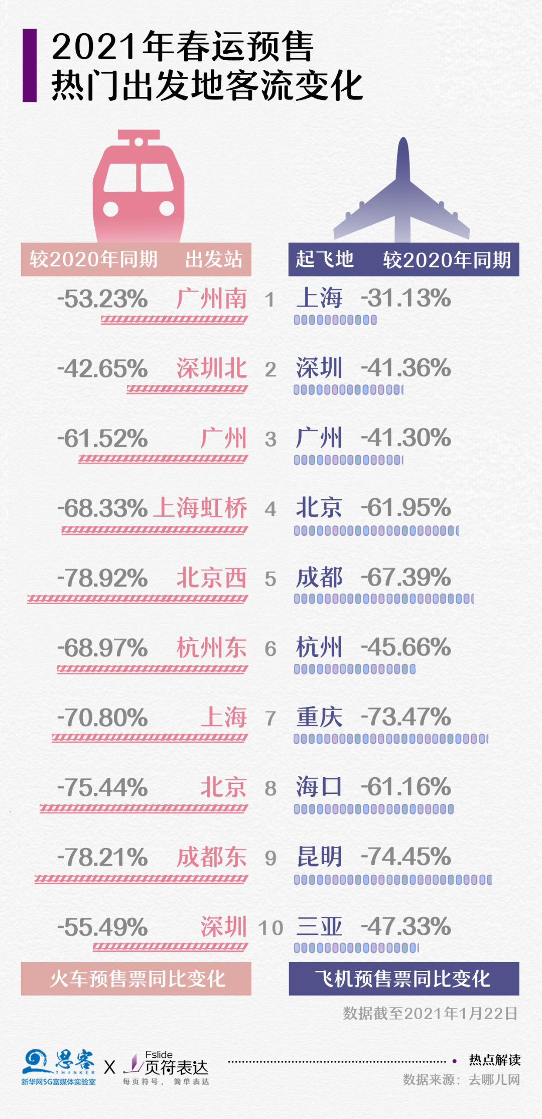 2021年春運客流驟降,“就地過年”減少了春運期間人流遷徙。根據交通運輸部門預測,2021年全國春運期間將發(fā)送旅客17億人次左右,日均4000萬人次,比2019年下降四成多,比2020年增加一成多。