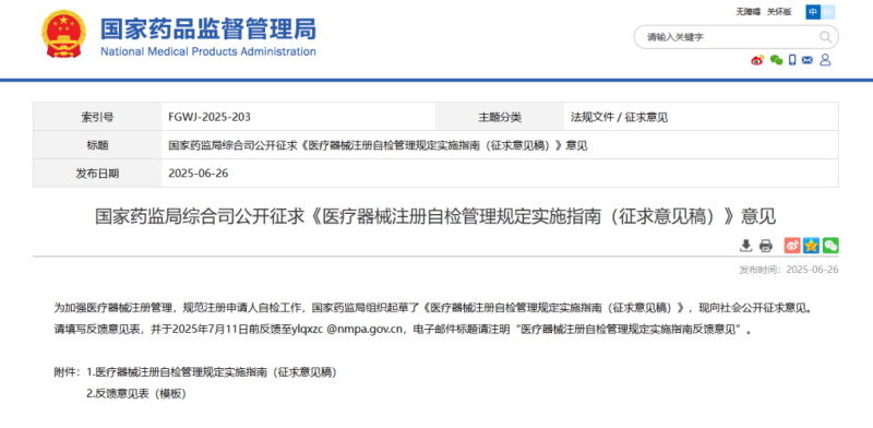 意見反饋郵箱:ylqxzc @nmpa.gov.cn