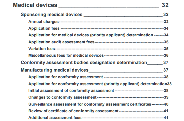 以上僅摘錄了醫(yī)療器械重點收費項目,完整費用清單(如符合性評估申請費等)請參閱TGA官方文件。