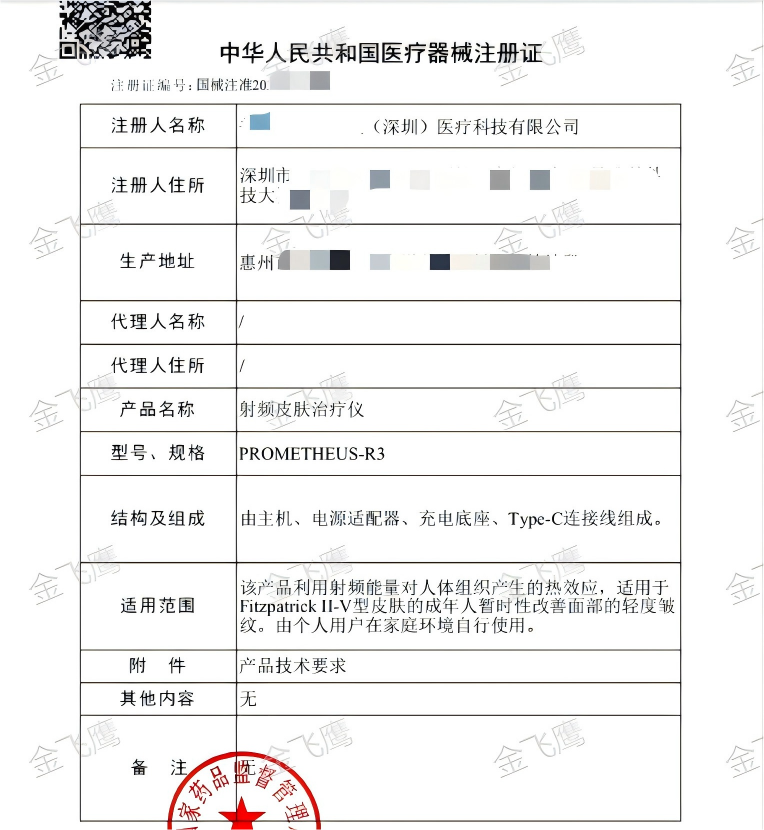 近日,金飛鷹輔導(dǎo)廣東企業(yè)成功取得【射頻皮膚治療儀】的注冊證,并且是業(yè)內(nèi)第一張手持式射頻皮膚治療儀(集射頻、微電流、光,于一體)注冊證。老規(guī)矩,本期文章就跟大家分享一下此類產(chǎn)品注冊的相關(guān)事項(xiàng)。