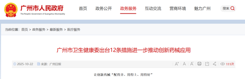 十二條措施 推動廣州創(chuàng)新藥械應用
