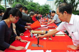 書法家揮毫寫春聯(lián)贈市民