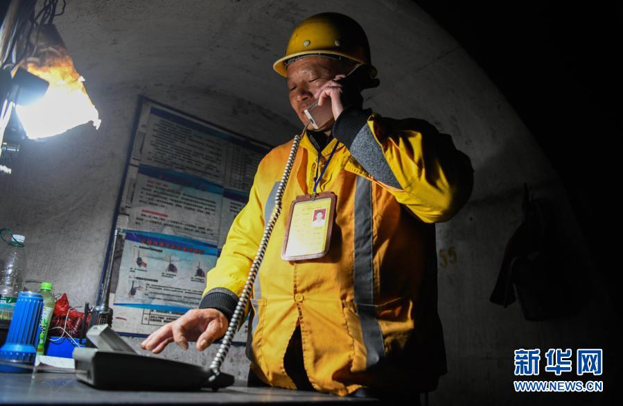 看守工廖成根在鄧山隧道內(nèi)通過(guò)電話匯報(bào)當(dāng)日班次的情況(1月30日攝)。