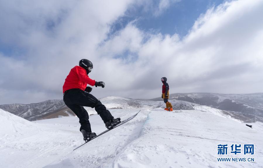 3月20日,冬殘奧會國家集訓(xùn)隊單板滑雪運(yùn)動員巖溫的(左)在冬殘奧會訓(xùn)練基地訓(xùn)練。新華社記者 才揚(yáng) 攝