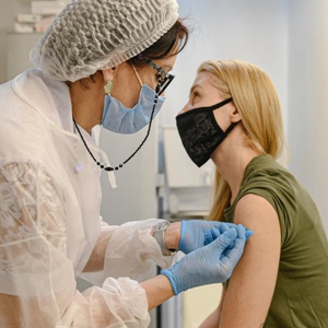 3月23日,在俄羅斯首都莫斯科,一名女士接種新冠疫苗。