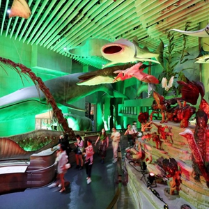 5月18日,參觀者在上海自然博物館生命長河展區(qū)參觀。