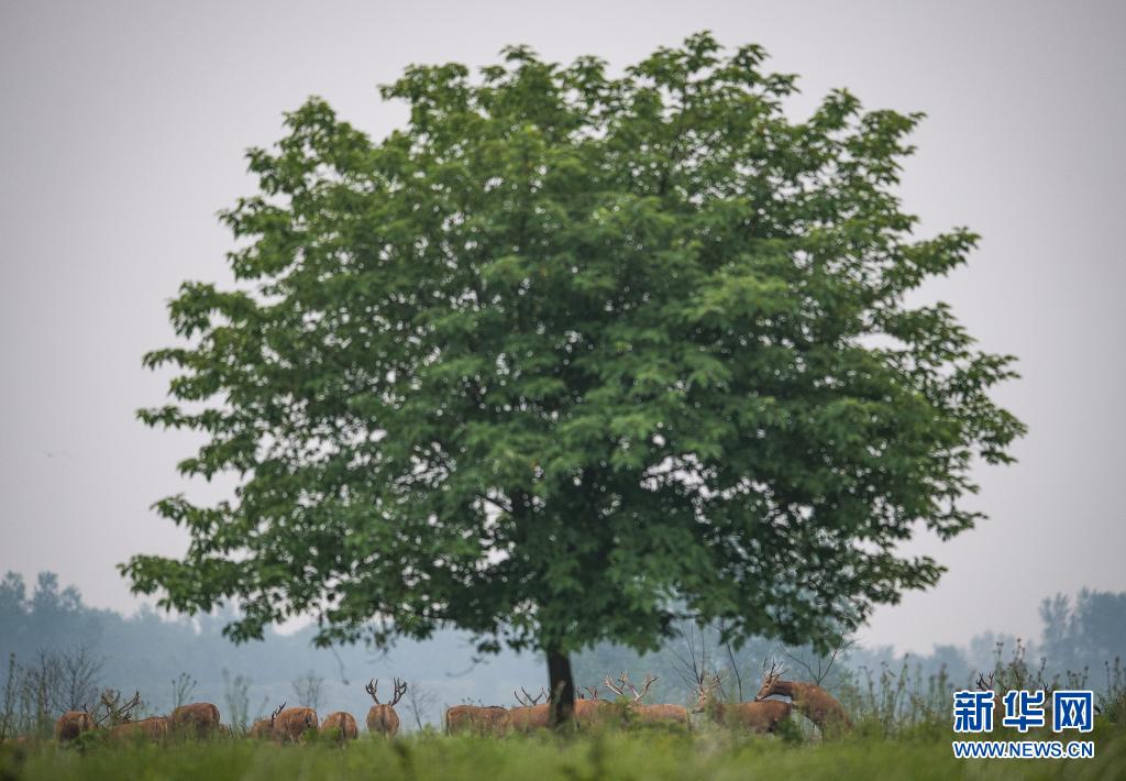 5月17日,一群麋鹿在石首麋鹿國(guó)家級(jí)自然保護(hù)區(qū)內(nèi)活動(dòng)。新華社記者 肖藝九 攝