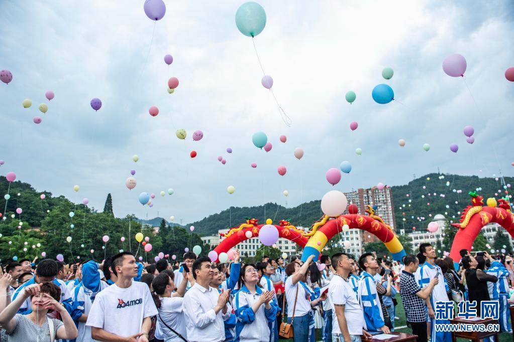 6月9日,烏當(dāng)中學(xué)高三學(xué)生放飛氣球。