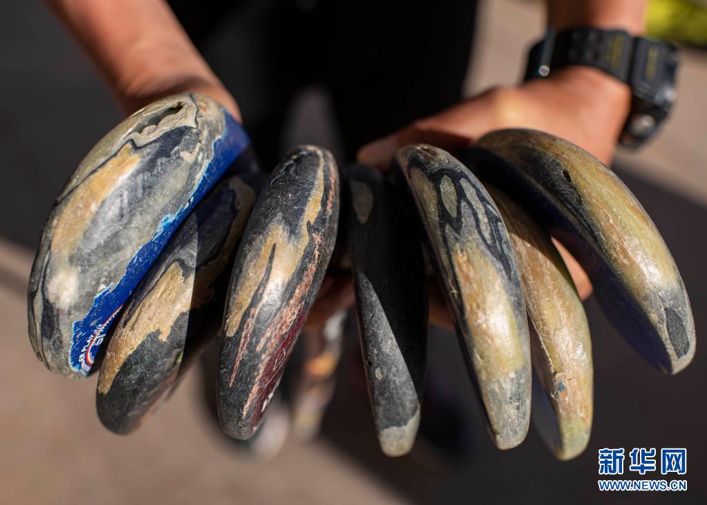 訓(xùn)練結(jié)束后,教練杜寶柱在收納小隊(duì)員們訓(xùn)練時使用的球棍(6月12日攝)。