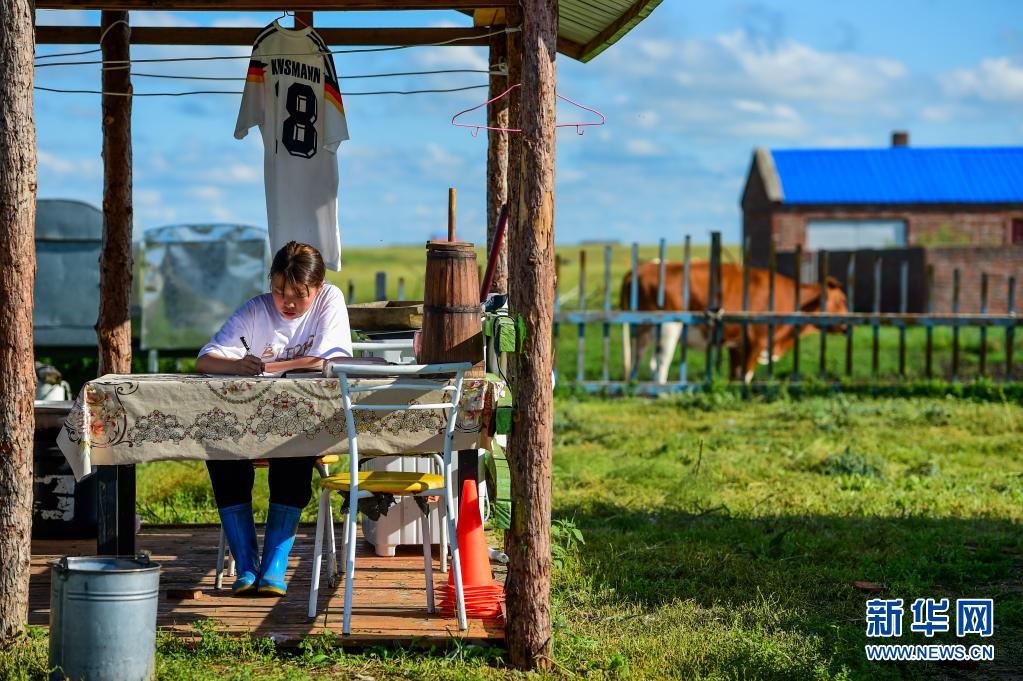 盛夏時節(jié)的呼倫貝爾草原美不勝收,吉布斯樂瑪一邊幫助父母放牛,一邊學習,空閑時間與足球為伴,假期生活分外充實。