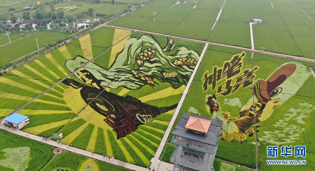 近日,遼寧省沈陽市沈北新區(qū)錫伯龍地創(chuàng)意農(nóng)業(yè)產(chǎn)業(yè)園的稻田畫進(jìn)入觀賞期,多種色彩的水稻組成稻田畫,吸引眾多游人前來觀光體驗。