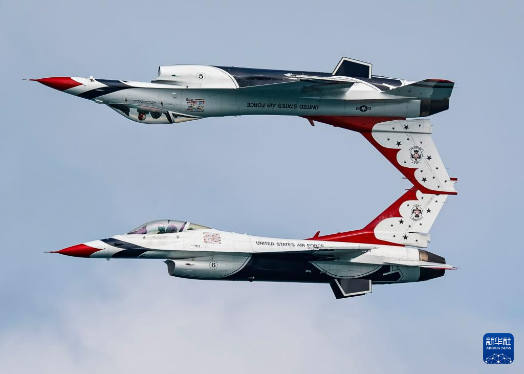 8月17日,美国空军“雷鸟”飞行表演队在芝加哥上空进行特技飞行表演。