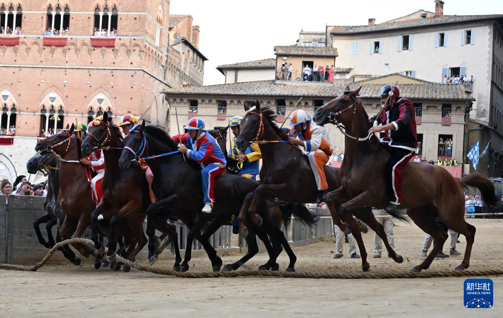 8月16日,在意大利锡耶纳,选手在赛马比赛中。