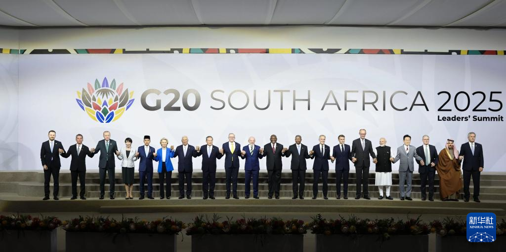 当地时间11月22日,国务院总理李强在约翰内斯堡出席二十国集团领导人第二十次峰会第一阶段会议,就“包容和可持续经济增长”议题发表讲话。这是与会领导人集体合影。
