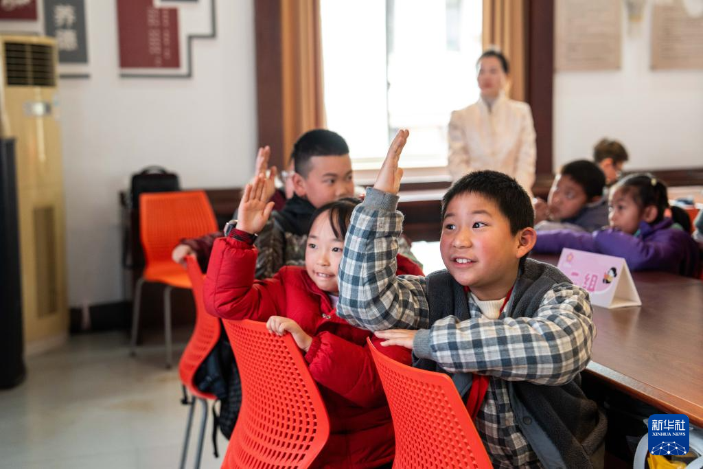 2月1日,在芙蓉区识字里社区服务中心,学生们举手回答问题。