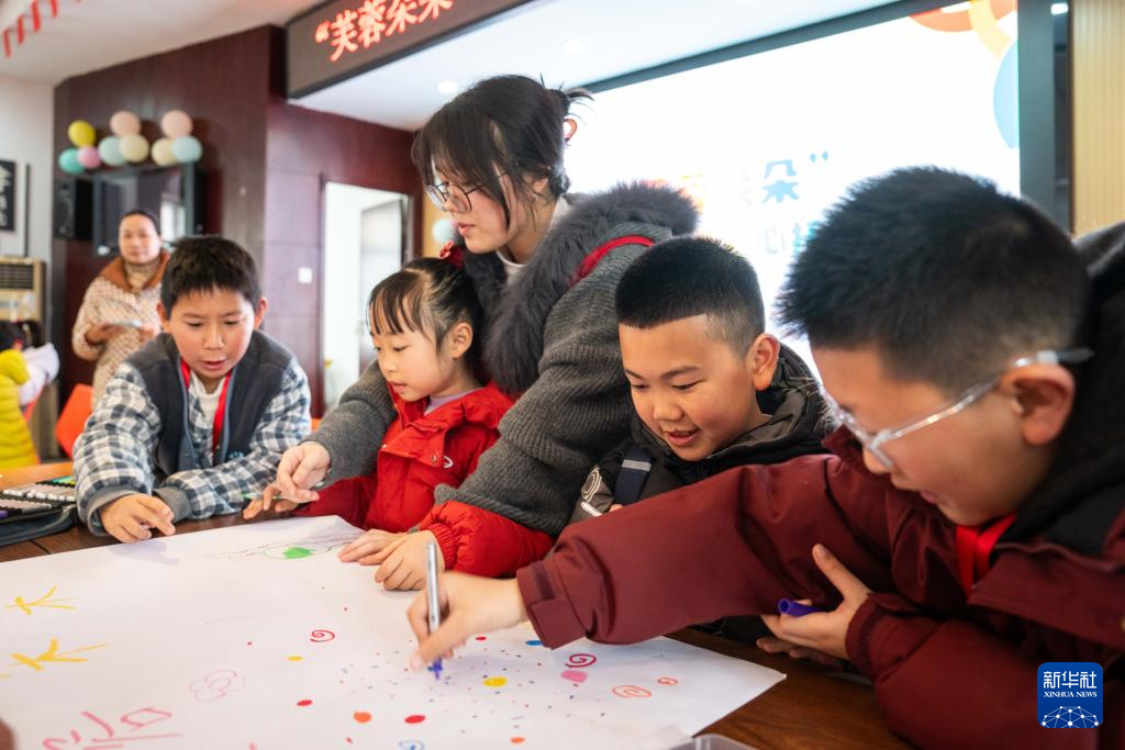 2月1日,在芙蓉区识字里社区服务中心,学生们在课堂上画画。