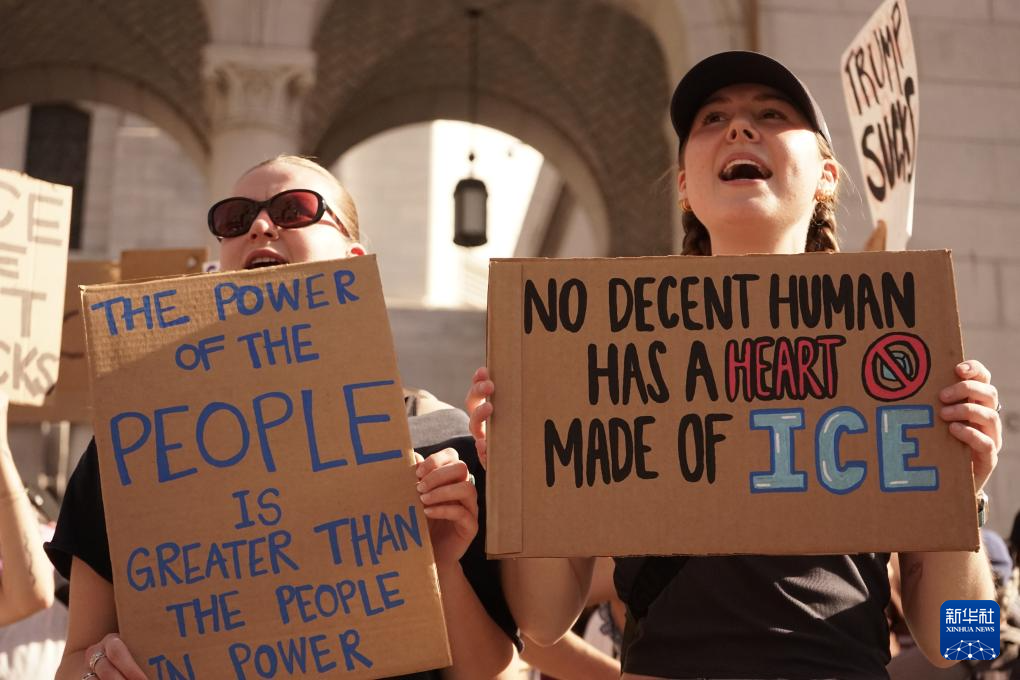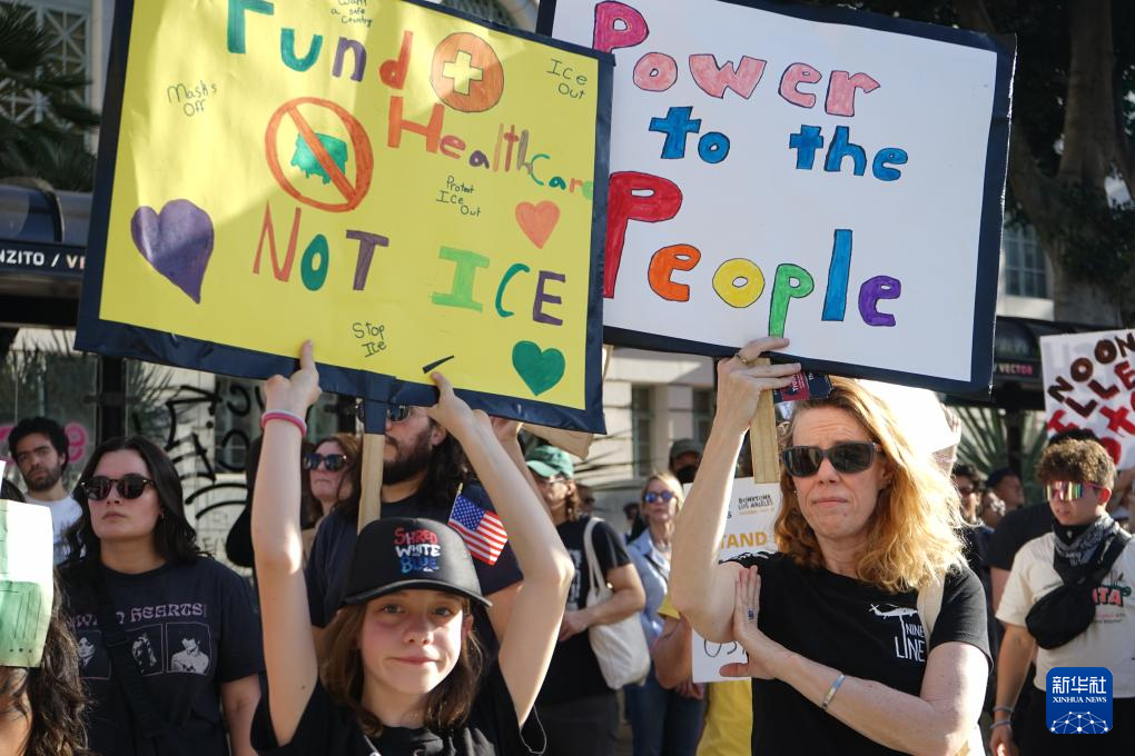 美国南加州多地举行反暴力移民执法示威活动-新华网
