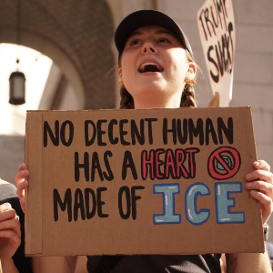 作为由“50501运动(50场抗议,50个州,1个运动)”组织的反对移民和海关执法局“全国行动日”的一部分,美国加利福尼亚州南部地区多座城市1月31日举行了示威活动。