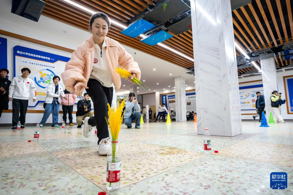 3月19日,学生在湖南农业大学参加农趣运动游戏——抢种抢收。