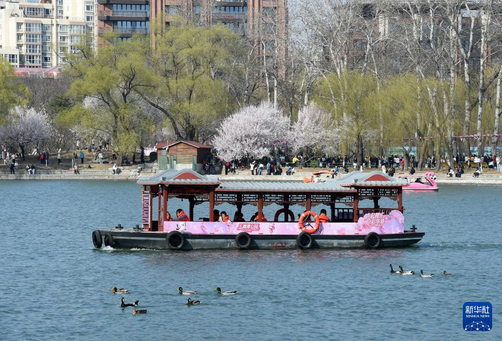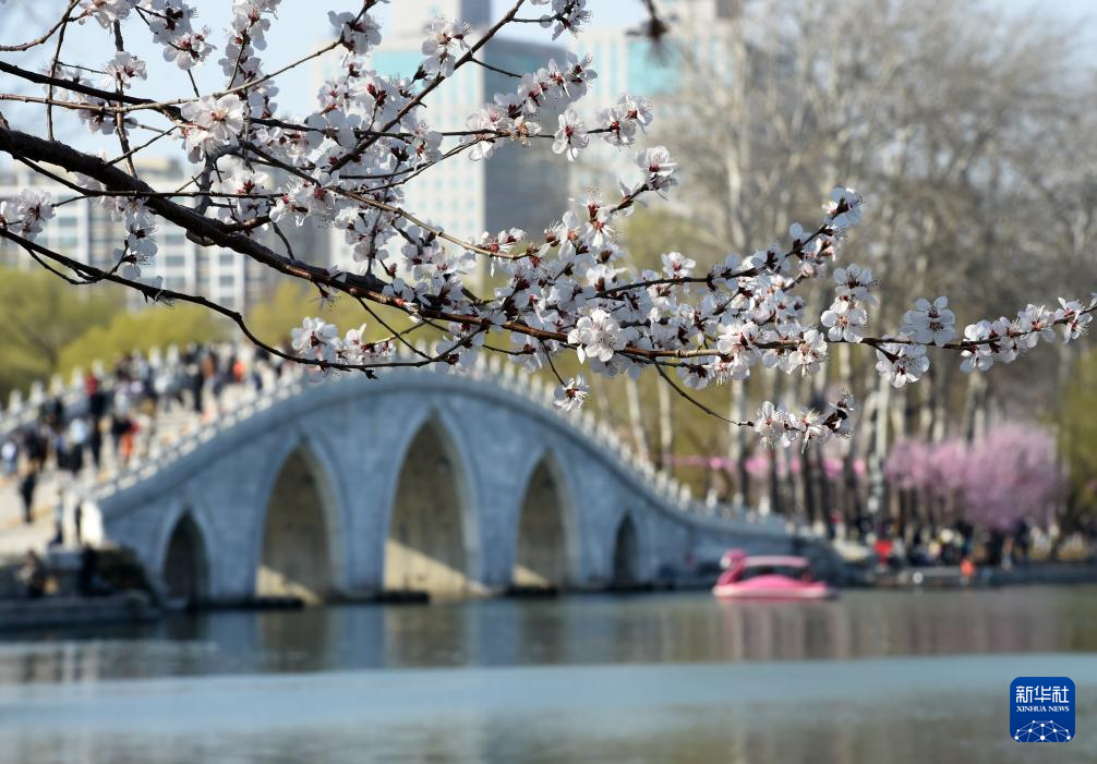 春和景明,北京玉渊潭公园春花争艳,春意盎然,吸引众多游客前来踏青赏花。