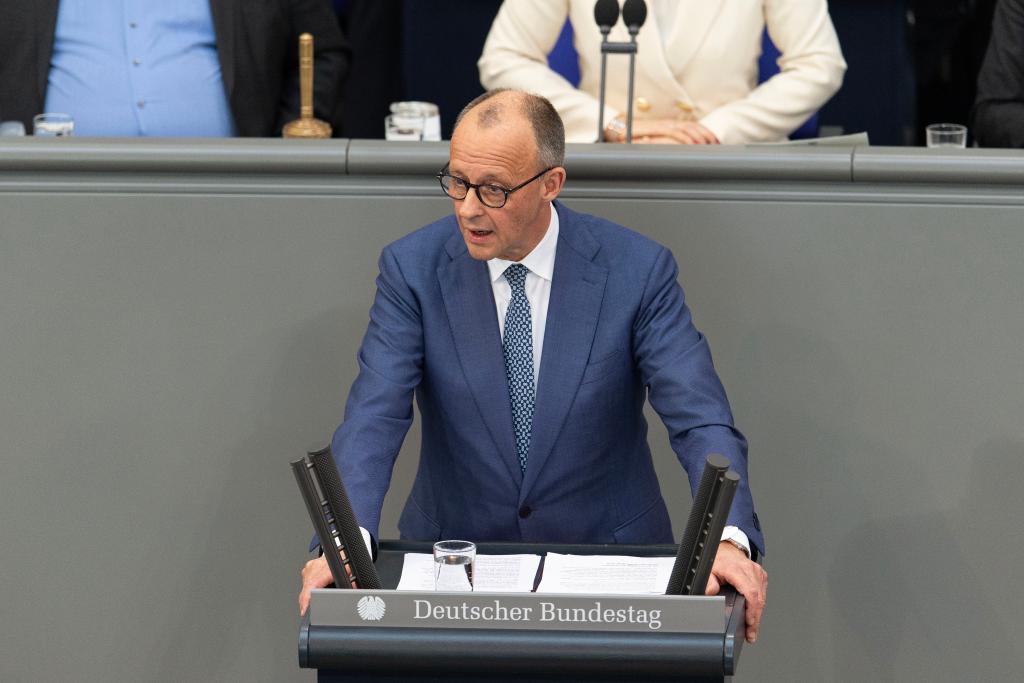 3月18日,德国总理默茨在位于首都柏林的德国联邦议院发表讲话。