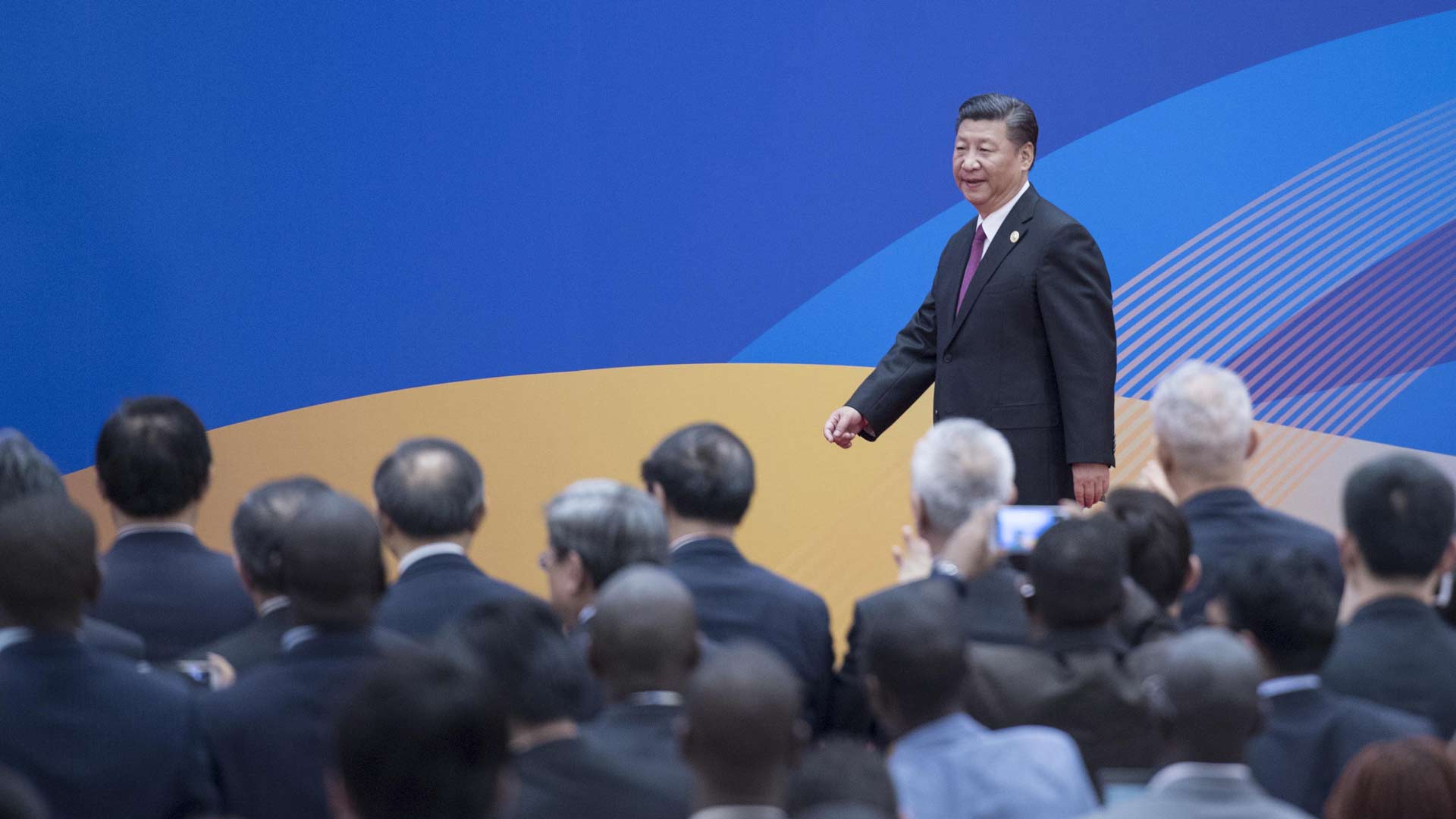 5月15日,“一帶一路”國際合作高峰論壇在北京雁棲湖國際會議中心舉行圓桌峰會,國家主席習近平主持會議并致辭。圓桌峰會閉幕后,習近平會見中外記者,介紹“一帶一路”國際合作高峰論壇會議情況和主要成果。這是習近平步入記者會現(xiàn)場。新華社記者 李濤 攝