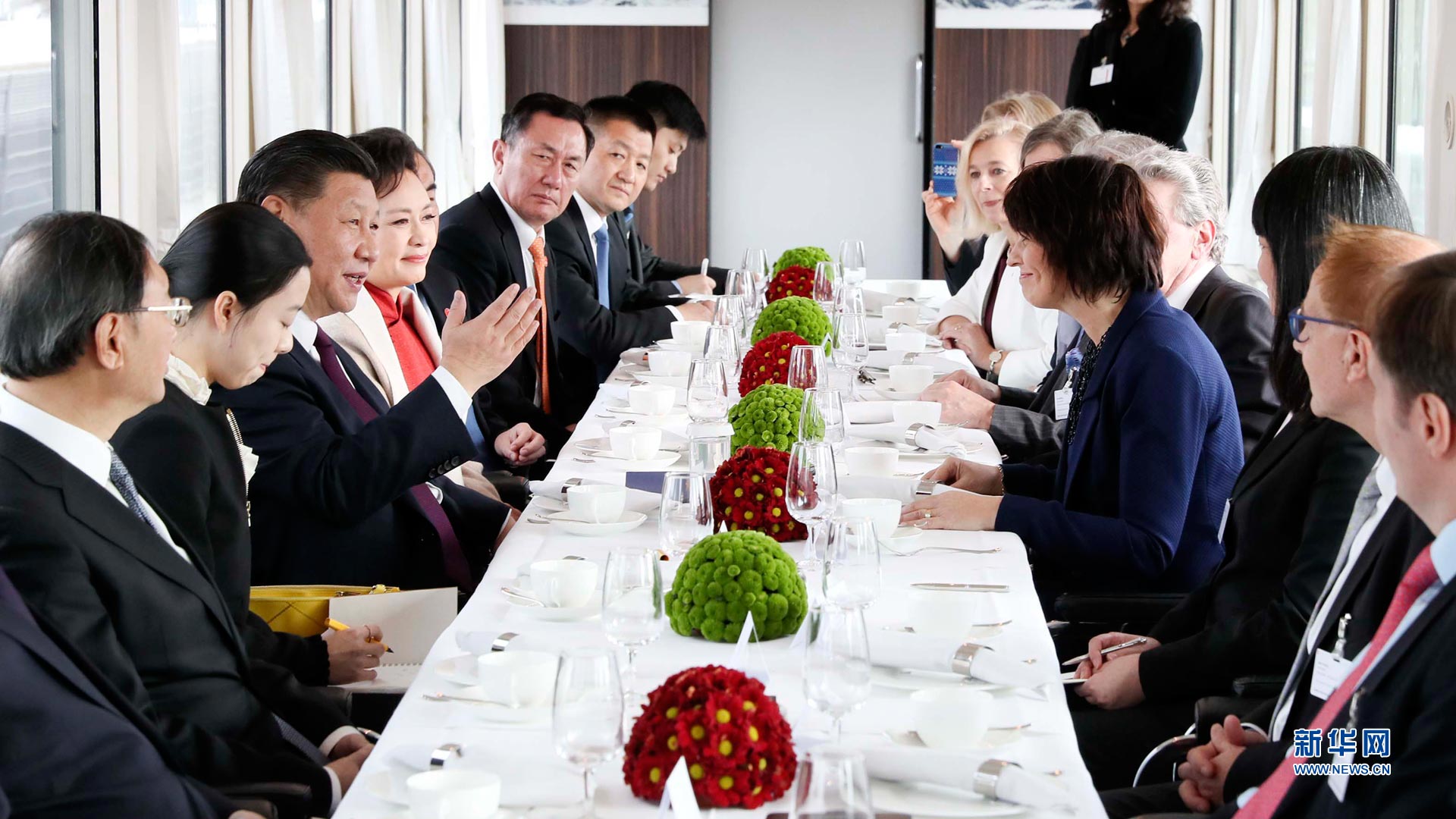 1月15日,國(guó)家主席習(xí)近平在瑞士聯(lián)邦主席洛伊特哈德陪同下,乘坐瑞士政府專列自蘇黎世前往瑞士首都伯爾尼。在專列行進(jìn)過程中,習(xí)近平和夫人彭麗媛受洛伊特哈德主席夫婦邀請(qǐng),在輕松愉快的氛圍中品茶暢談。新華社記者蘭紅光攝2017-01-16