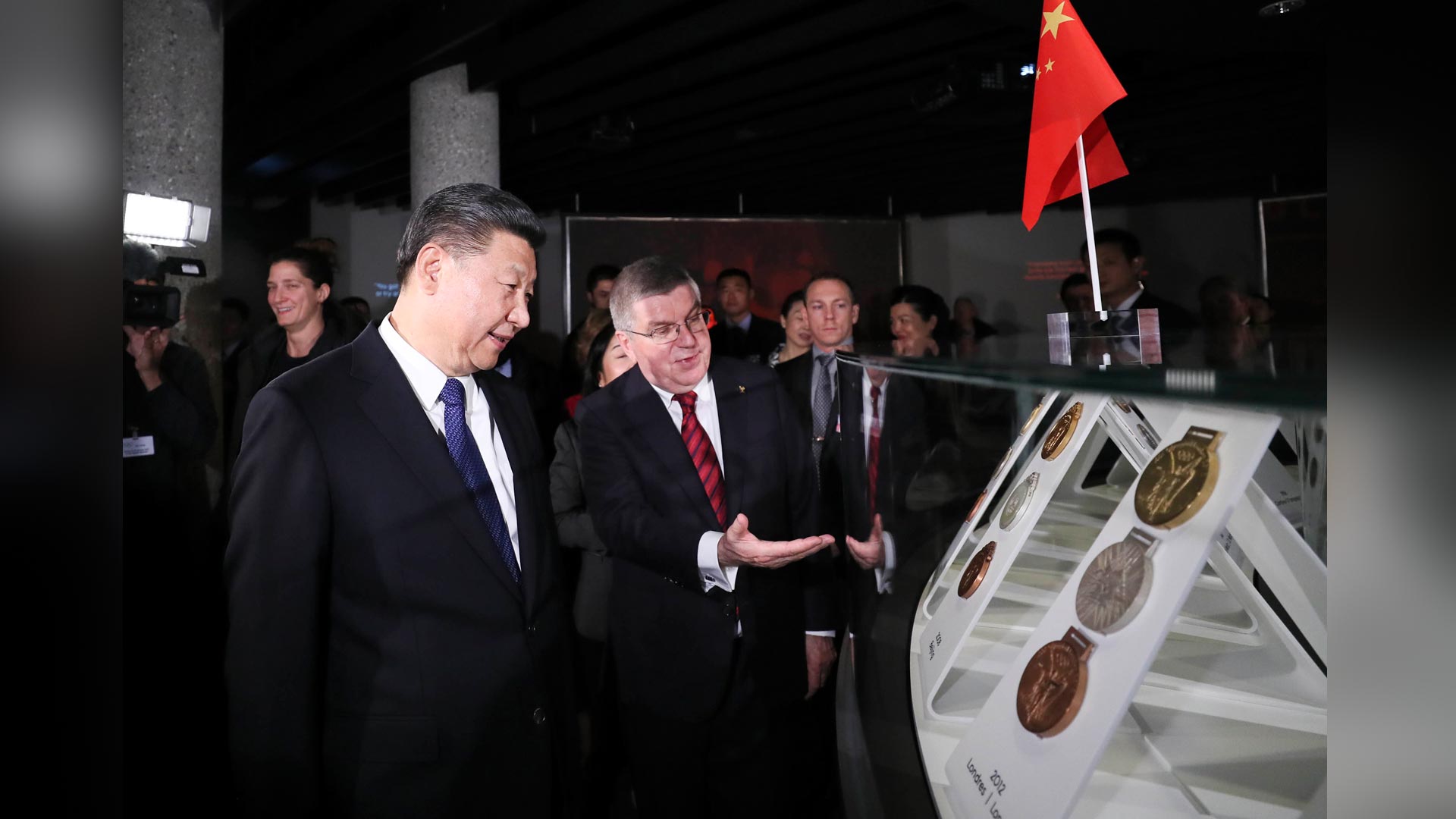 1月18日,國(guó)家主席習(xí)近平在瑞士洛桑國(guó)際奧林匹克博物館會(huì)見國(guó)際奧林匹克委員會(huì)主席巴赫。這是會(huì)見后,習(xí)近平在巴赫陪同下參觀國(guó)際奧林匹克博物館。新華社記者 姚大偉 攝2017-01-19