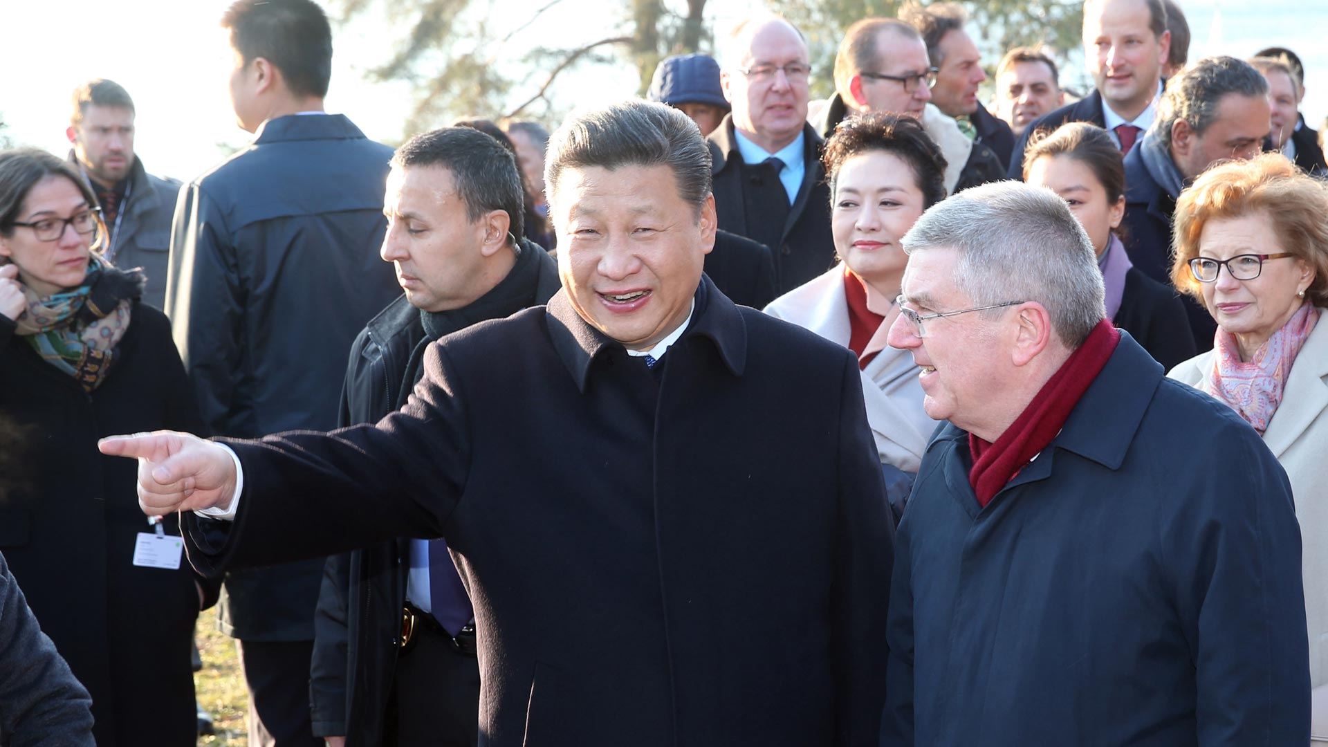 1月18日,國(guó)家主席習(xí)近平在瑞士洛桑國(guó)際奧林匹克博物館會(huì)見國(guó)際奧林匹克委員會(huì)主席巴赫。這是會(huì)見后,習(xí)近平和夫人彭麗媛在巴赫主席夫婦陪同下,參觀國(guó)際奧林匹克博物館。新華社記者 姚大偉 攝2017-01-19