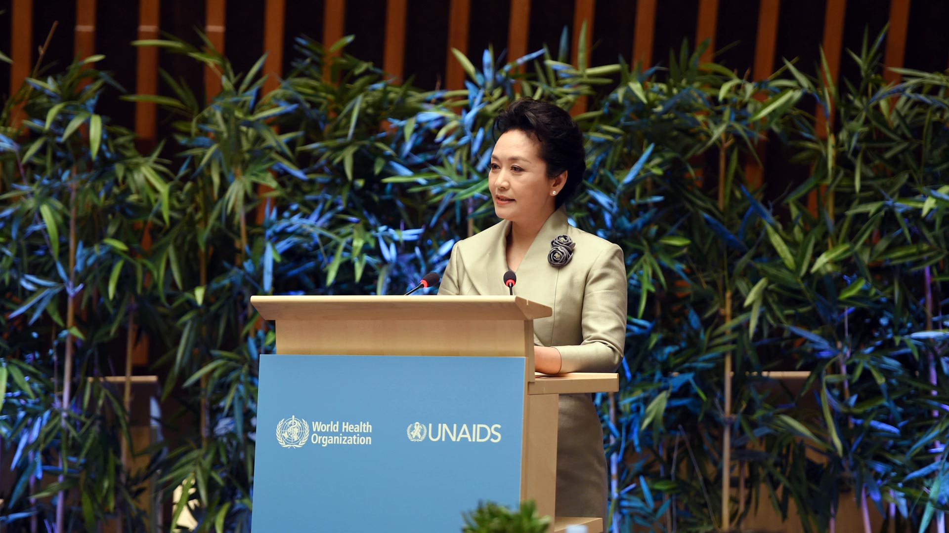 1月18日,國(guó)家主席習(xí)近平夫人、世界衛(wèi)生組織結(jié)核病和艾滋病防治親善大使彭麗媛應(yīng)世界衛(wèi)生組織總干事陳馮富珍和聯(lián)合國(guó)艾滋病規(guī)劃署執(zhí)行主任西迪貝邀請(qǐng),在瑞士日內(nèi)瓦出席為她舉行的親善大使任期續(xù)延暨頒獎(jiǎng)儀式。這是彭麗媛在儀式上致辭。新華社記者謝環(huán)馳攝2017-01-19