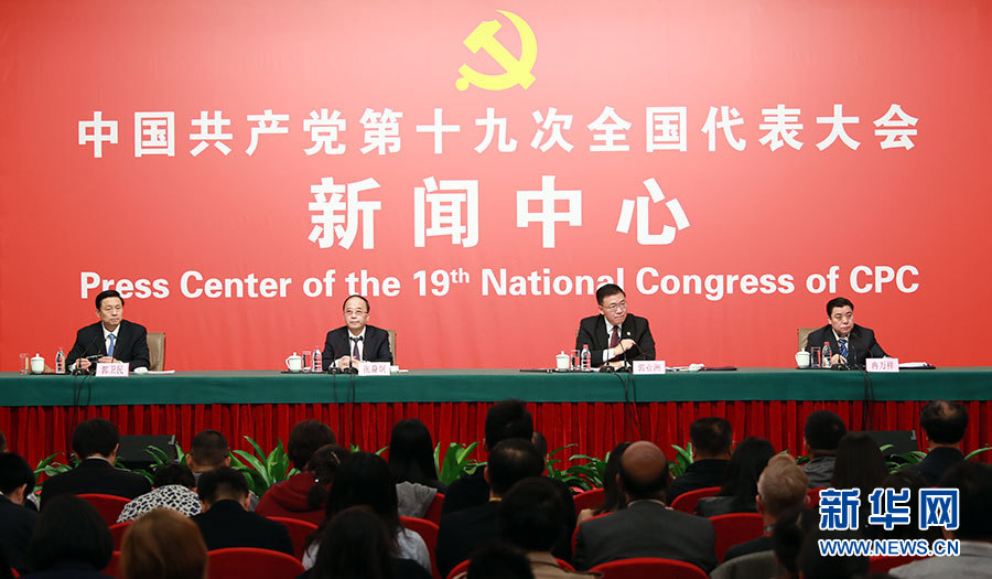 10月21日,十九大新聞中心舉辦記者招待會,邀請中共中央統(tǒng)戰(zhàn)部常務副部長張裔炯、副部長冉萬祥,中共中央對外聯(lián)絡部副部長郭業(yè)洲介紹黨的統(tǒng)一戰(zhàn)線工作和黨的對外交往情況,并回答記者提問。圖為記者招待會現(xiàn)場。新華網 郝廣鵬攝
