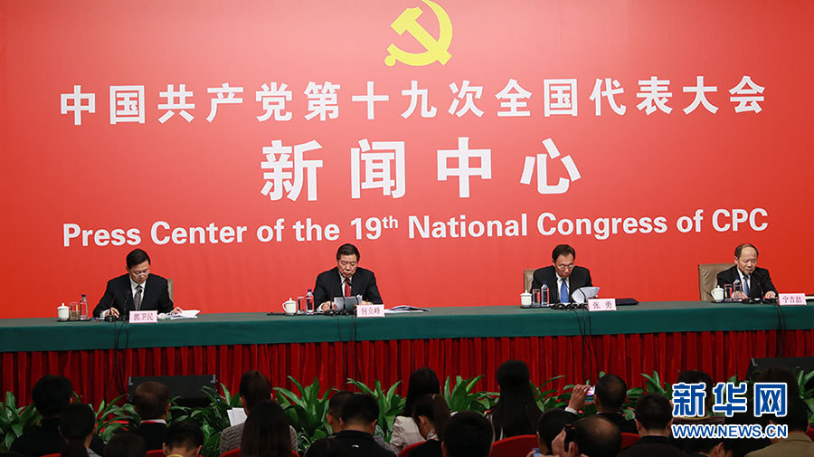 ??? 10月21日,十九大新聞中心舉辦記者招待會,邀請國家發(fā)展改革委黨組書記、主任何立峰,副主任張勇,副主任寧吉喆介紹以新發(fā)展理念為引領(lǐng),推進(jìn)中國經(jīng)濟(jì)平穩(wěn)健康可持續(xù)發(fā)展有關(guān)情況,并回答記者提問。圖為記者招待會現(xiàn)場。新華網(wǎng) 郝廣鵬攝