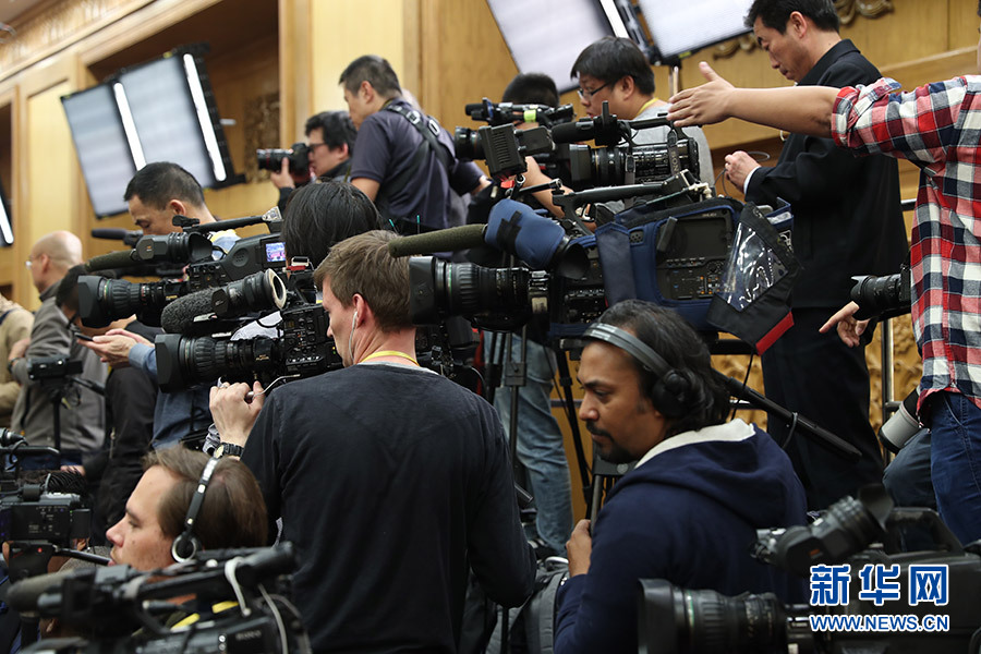 ??? 10月25日,黨的十九屆中央委員會(huì)第一次全體會(huì)議新選出的中央政治局常委將同中外記者見(jiàn)面。圖為中外記者在見(jiàn)面會(huì)現(xiàn)場(chǎng)進(jìn)行準(zhǔn)備工作。新華網(wǎng) 翟子赫 攝