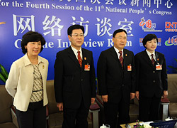 [主持人王效云]與前幾次“代表與網(wǎng)民在線交流”活動(dòng)的問(wèn)答方式相同,三位代表將輪流回答11家網(wǎng)站網(wǎng)友的提問(wèn),其他嘉賓可以作補(bǔ)充。在線交流開(kāi)始。首先,請(qǐng)中國(guó)網(wǎng)絡(luò)電視臺(tái)提出網(wǎng)友的問(wèn)題。 [2011-03-11 20:19:56] |