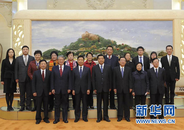 這是會(huì)議開始前賈慶林等親切會(huì)見馬文瑞同志親屬。 新華社記者 饒愛民 攝
