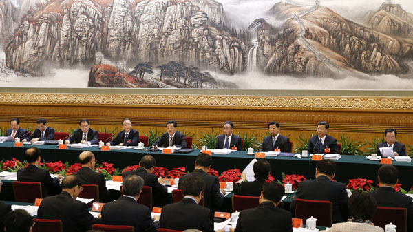 ??? 11月10日,中國(guó)共產(chǎn)黨第十八次全國(guó)代表大會(huì)主席團(tuán)在北京人民大會(huì)堂舉行第二次會(huì)議。胡錦濤、吳邦國(guó)、溫家寶、賈慶林、李長(zhǎng)春、習(xí)近平、李克強(qiáng)、賀國(guó)強(qiáng)、周永康等出席會(huì)議。新華社記者鞠鵬攝