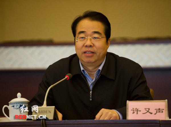 湖南省委常委、省委宣傳部部長許又聲在動(dòng)員會(huì)上講話。