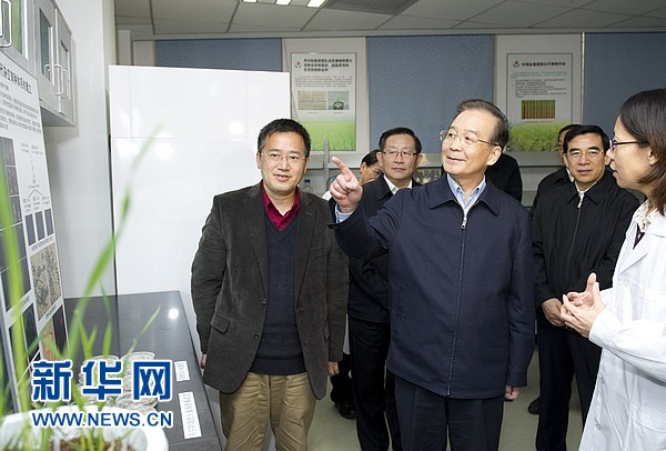 ??? 12月13日,國務院總理溫家寶到北京中關村考察并與部分企業(yè)負責人座談。這是溫家寶在未名凱拓農業(yè)生物技術有限公司考察。 新華社記者黃敬文 攝
