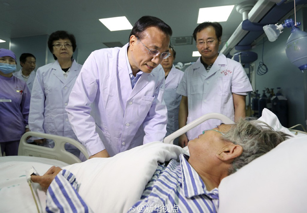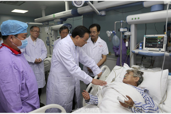 李克強(qiáng)看望獲救老人:我看著你被救上來(lái)的