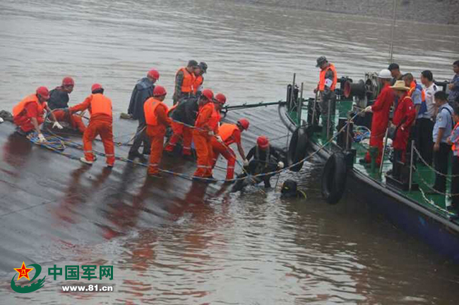 海軍工程大學(xué)潛水分隊接到救援命令后火速出發(fā),奔赴事發(fā)地點。第一批13名潛水員及一名醫(yī)生,于2日11時20分到達救援現(xiàn)場,11時30分下水展開救援。第二批3名潛水員及一名潛水醫(yī)生,于14時30分到達救援現(xiàn)場。