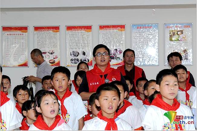 左臣作為代表參與當(dāng)?shù)匦W(xué)的公益活動(dòng)。本人供圖