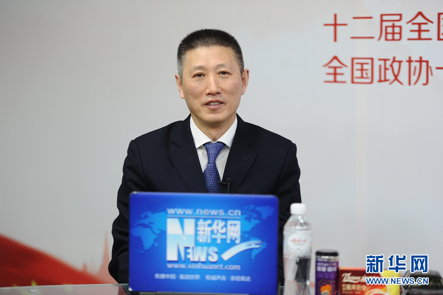 ??? 2016年3月13日,全國人大代表,煙臺張裕葡萄釀酒股份有限公司總經(jīng)理周洪江做客新華網(wǎng)兩會訪談。圖為周洪江在訪談現(xiàn)場。新華網(wǎng) 盧志佳 攝