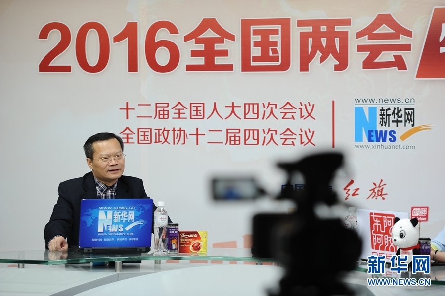 2016年3月14日,全國人大代表、湖南省益陽市委書記胡忠雄做客新華網(wǎng)兩會(huì)訪談直播間。圖為訪談現(xiàn)場。新華網(wǎng) 盧志佳 攝