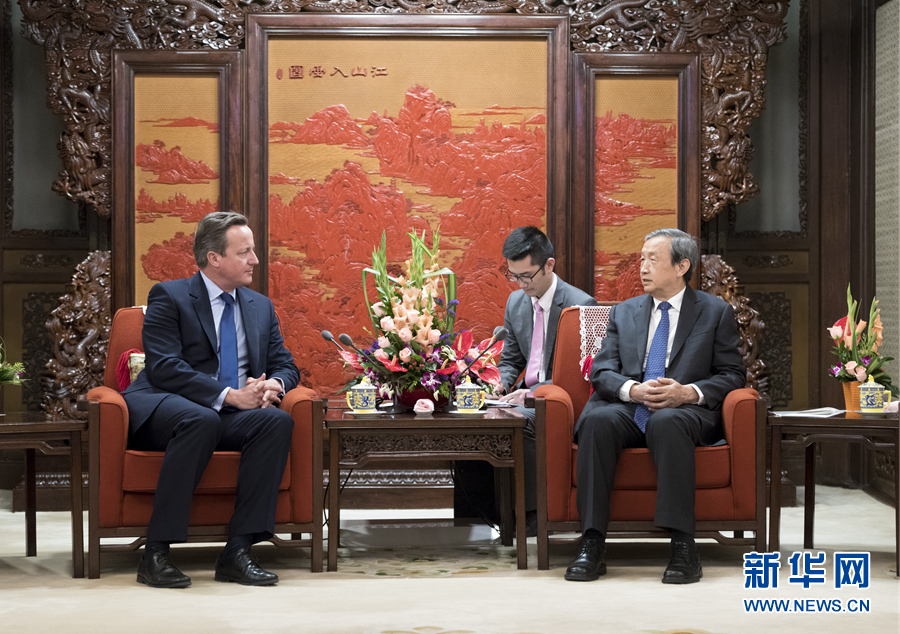 9月20日,國務院副總理馬凱在北京中南海紫光閣會見來訪的英國前首相卡梅倫。 新華社記者 丁海濤 攝